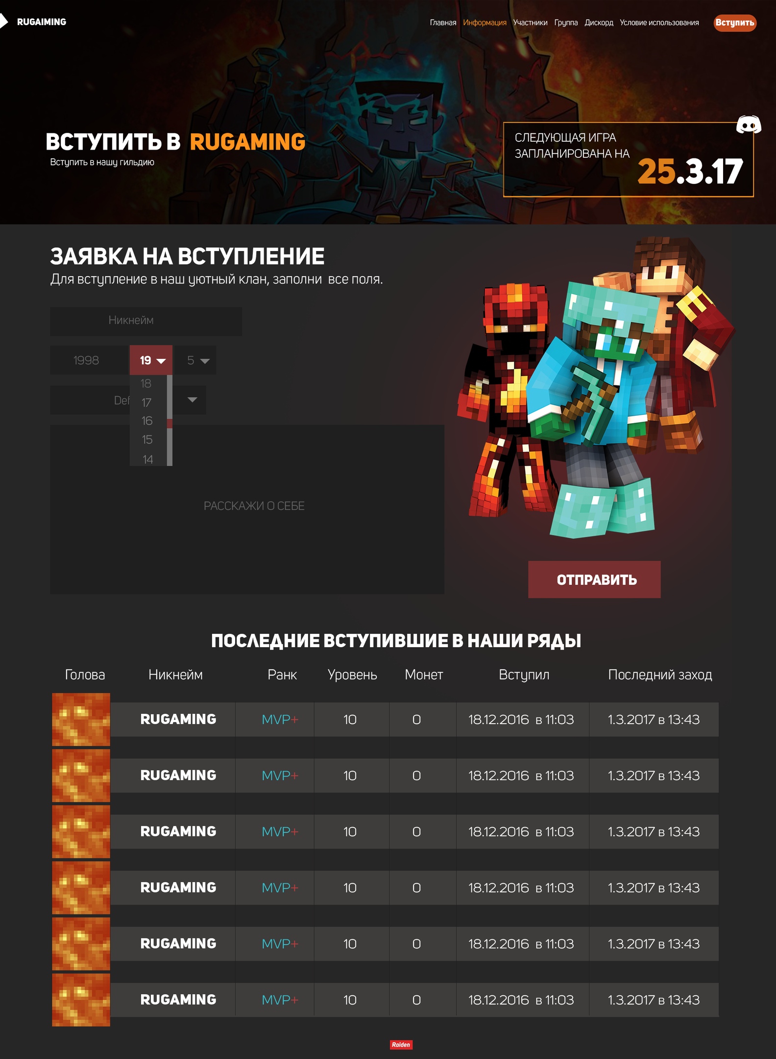 By trippsol in 2021-й год — 15 янв. 2021 Макет нашего сайта в 2017 году Новость гильдии RuGaming на Hypixel! Макет нашего сайта в 2017 году.Мы решили сделать новый, следите за новостями.Ссылка на VK